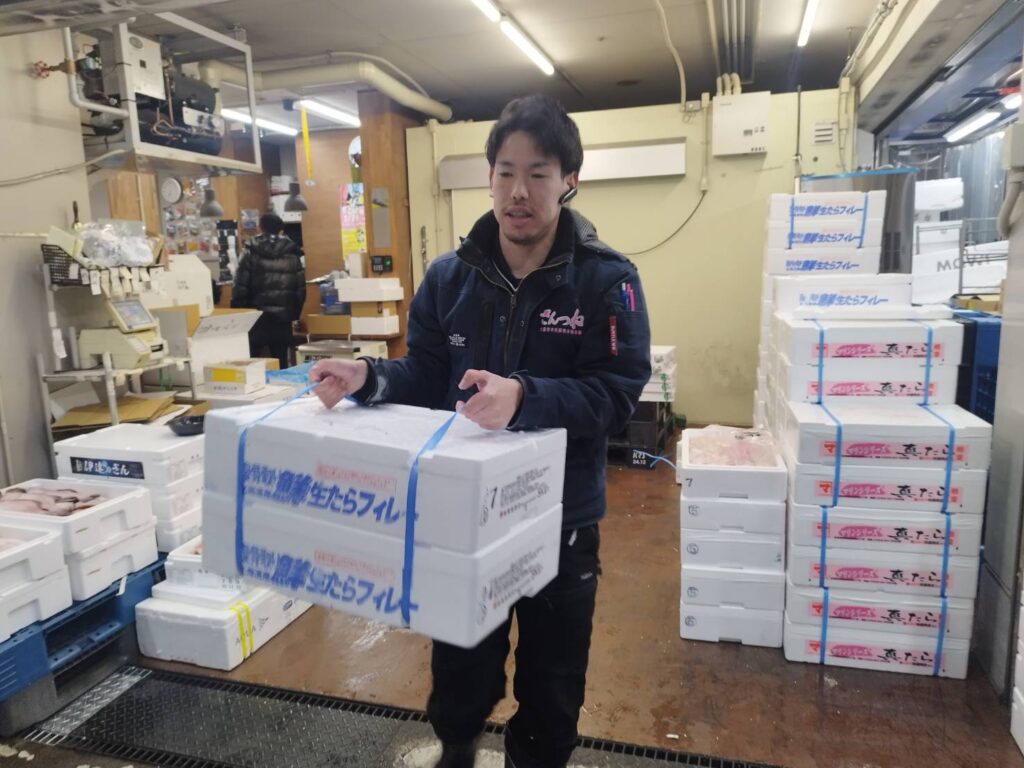 ――西山さんは、大阪市中央卸売市場内の仲卸業に就いていらっしゃるとのことですが、仲卸業者の1日ってどんな感じなんですか?